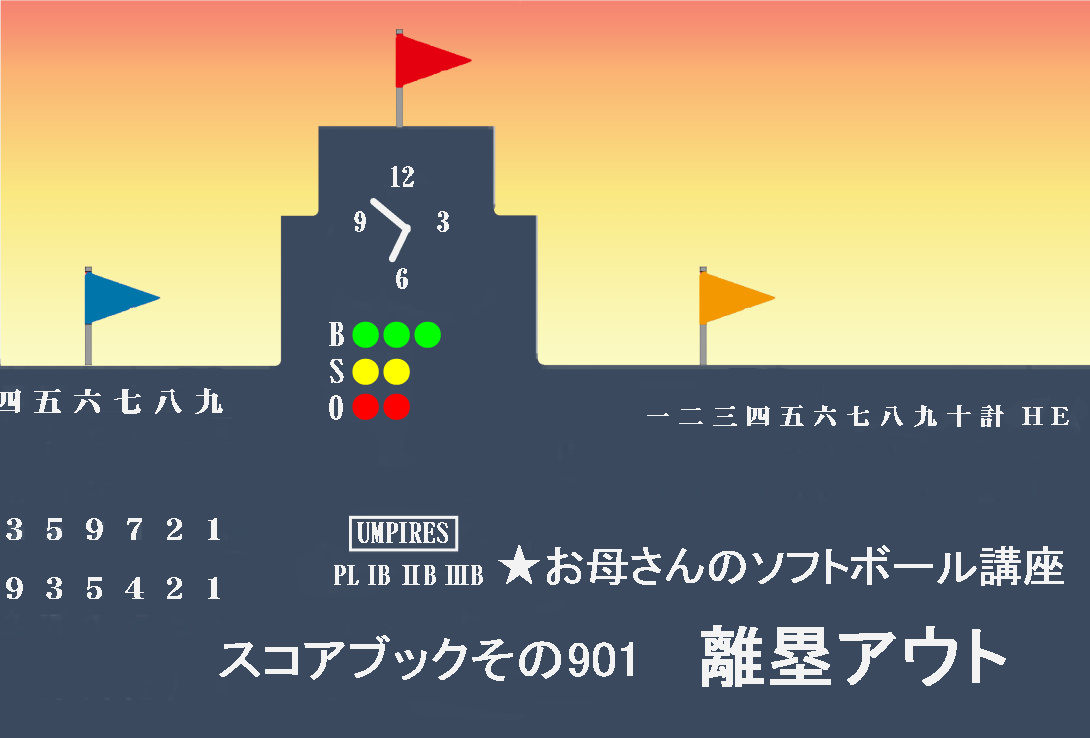 ソフトボールでは、ピッチャーの手からボールが離れる前に離塁(リード)するとアウトとなってしまいます。この場合のスコアの書き方を見ていきましょう。